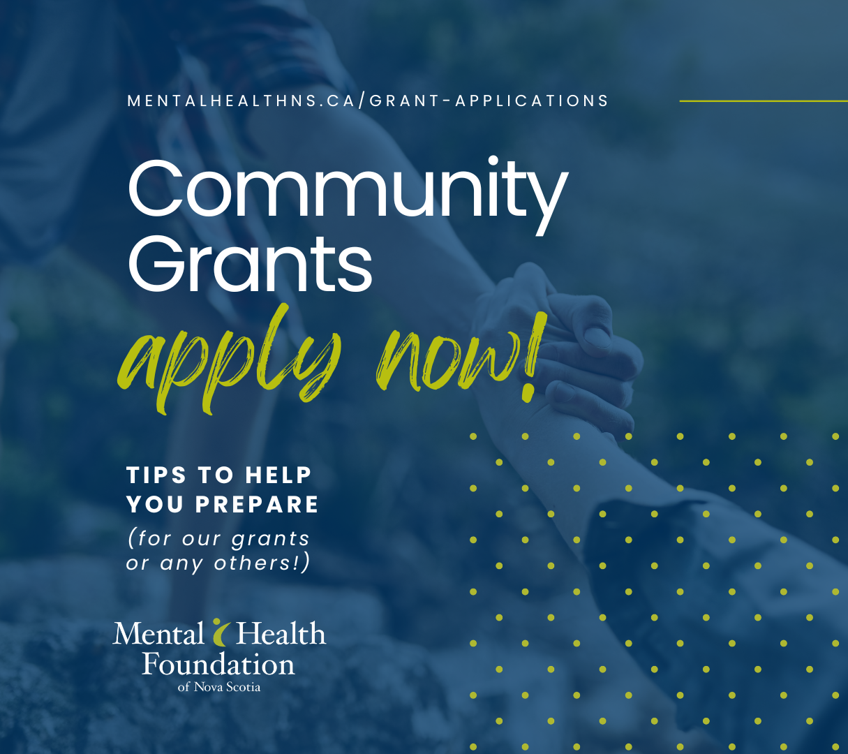 6. Make a connection – Contact the funder to confirm their priorities or goals and clarify any other questions you have after reviewing the resources. When the funder shares their contact information, they’re probably open to your questions. In our case, our Grants Lead, Monica, is here to help – grants@mentalhealthns.ca.